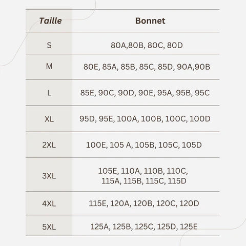 Consultez notre guide des tailles disponible sur la page produit. Certaines tailles de bonnets peuvent correspondre à plusieurs tailles différentes.